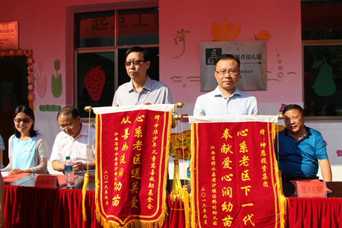 9月22日,中华少年儿童慈善救助基金会(以下简称:中华儿慈会)在江西省修水县黄沙镇汤桥村幼儿园举办了“起点工程”修水县二期项目揭牌仪式。中华儿慈会理事长兼秘书长王林,坤恩投资集团代表,修水县委副书记欧阳明华,县关工委副主任兼县关爱工作团团长晏立东,县关工委副主任兼办公室主任朱具林,县教体局党委委员王晓荣,黄沙镇党委副书记邓竑,修水县爱心联合会会长郭斌参加了本次揭牌仪式。