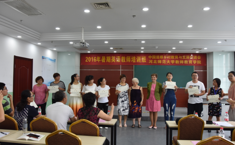 8月,童缘联合劝募计划成员项目“关爱民族偏远贫困地区住校女童健康项目”执行机构中国滋根与河北师范大学教师教育中心合作,邀请美国退休英语教师Judy的培训团队,对河北26个县的60名英语教师进行培训。培训从8月5日开始,为期两周。