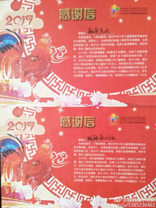 中华儿慈会谨代表受到韩庚粉丝关注支持与帮扶救助的所有项目及少年儿童,向大家表示衷心感谢。同时,祝愿韩庚先生生日快乐,希望今后韩庚先生能够有更多优秀的作品带给大家。同时,呼吁更多人关注中国困境儿童,为他们撑起更广阔的蓝天。