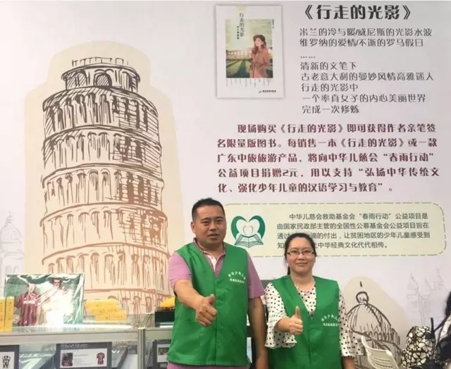 广东中旅与蔡紫芬小姐将现场新书与旅游线路售卖的部分所得,捐赠中华儿慈会“春雨行动”公益项目,用以支持“弘扬中华传统文化、强化少年儿童的汉语学习与教育”。中华儿慈会“春雨行动”理事长杨钰树先生向广东中旅颁发理事单位荣誉证书。