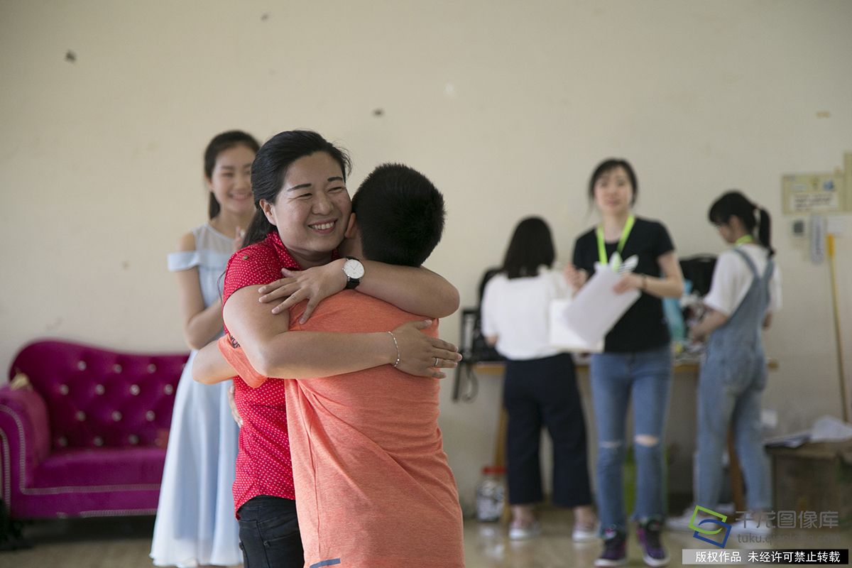 5月14日,家长与孩子拥抱在一起(图片来源:tuku.qianlong.com)。