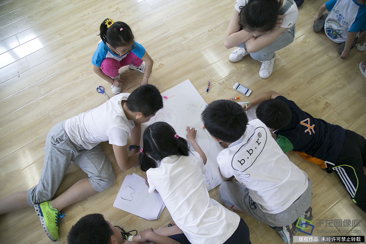 5月14日,孩子们设计制作自己团队的画作(图片来源:tuku.qianlong.com)。