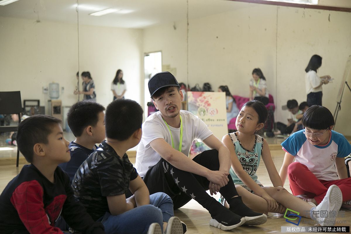 5月14日,排练期间青蛙王子与孩子们玩耍(图片来源:tuku.qianlong.com)。