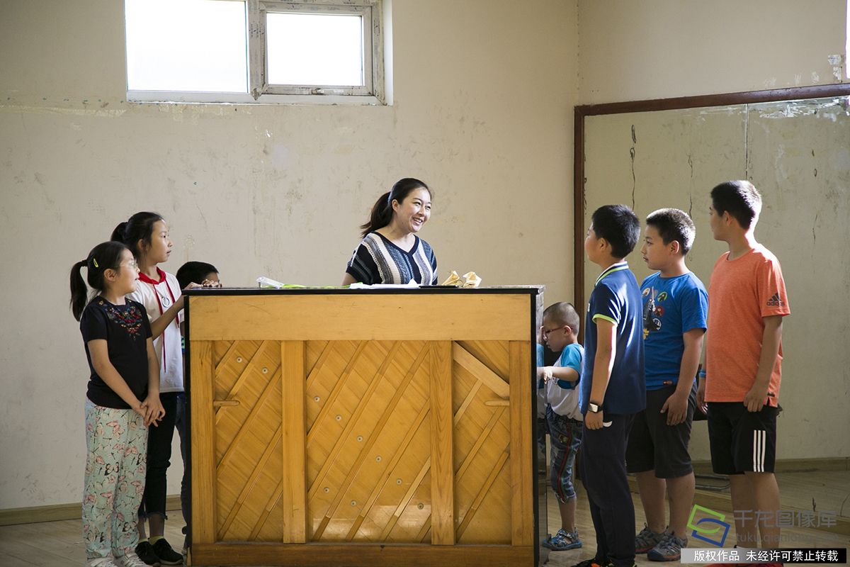 5月14日,曹嫚老师正在与孩子们一起表演(图片来源:tuku.qianlong.com)。