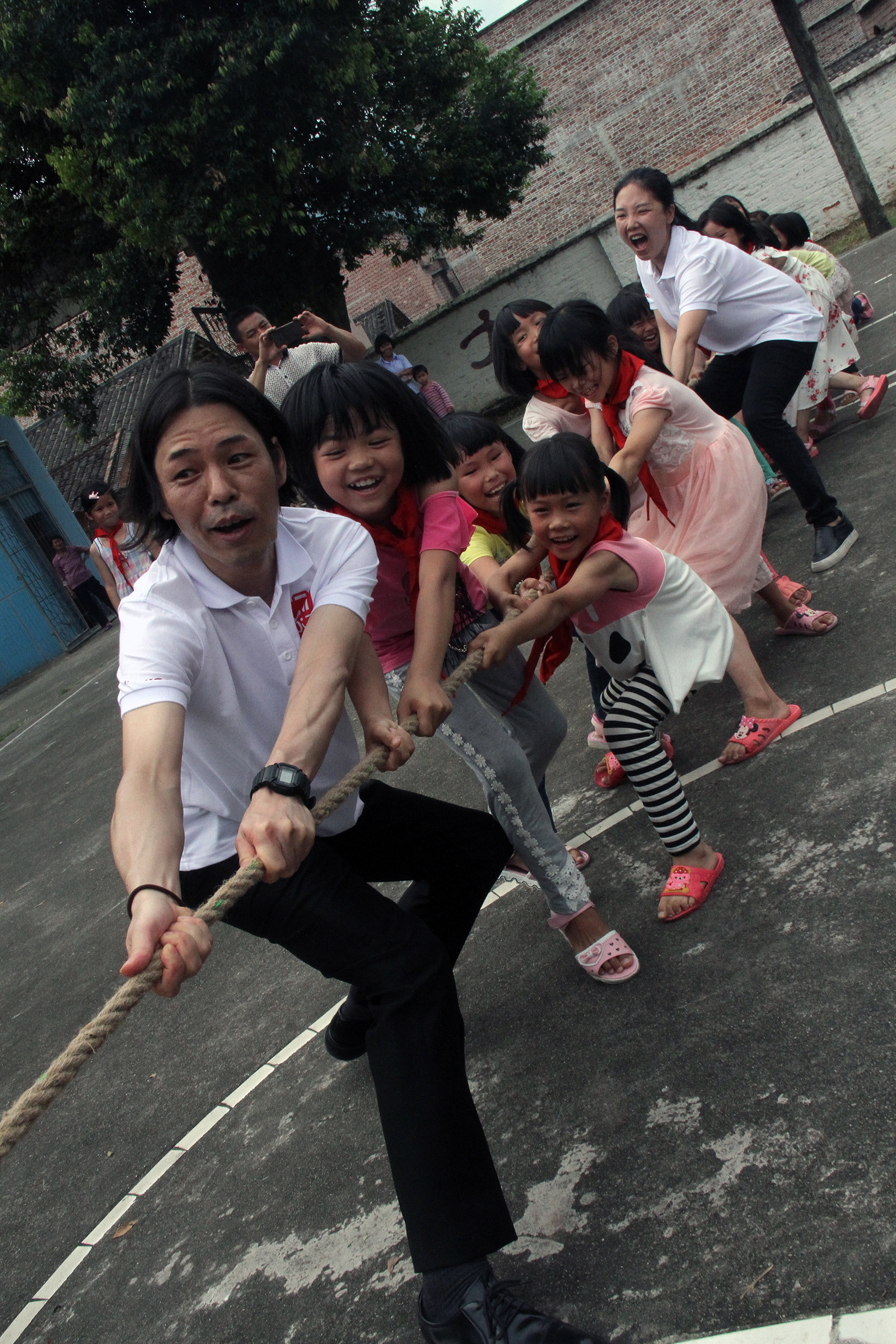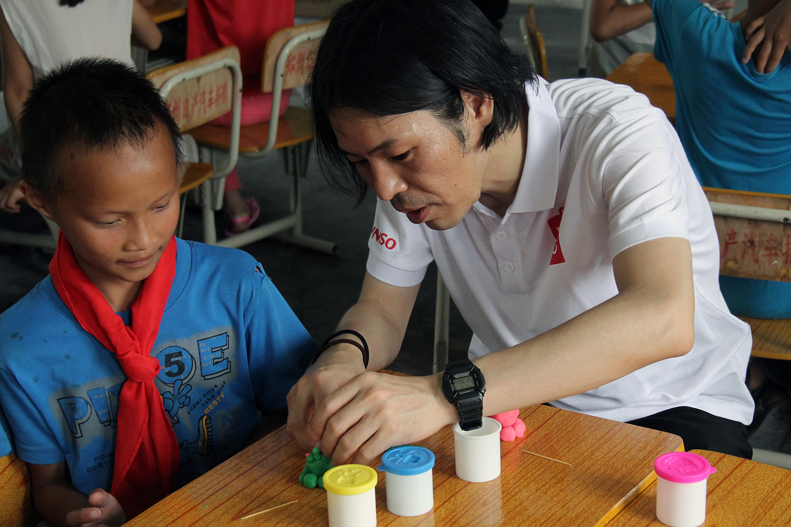 名创优品全球联合创始人兼首席设计师三宅顺也先生与孩子们一起做手工